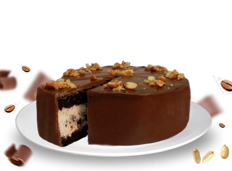 Кофейный – состоит из трёх слоев масляного кофейного бисквита (с добавлением кофе) два слоя сметанного крема, во втором слое карамель с солёным арахисом. Торт покрыт молочным шоколадом, отделан солёным арахисом и шоколадным декором